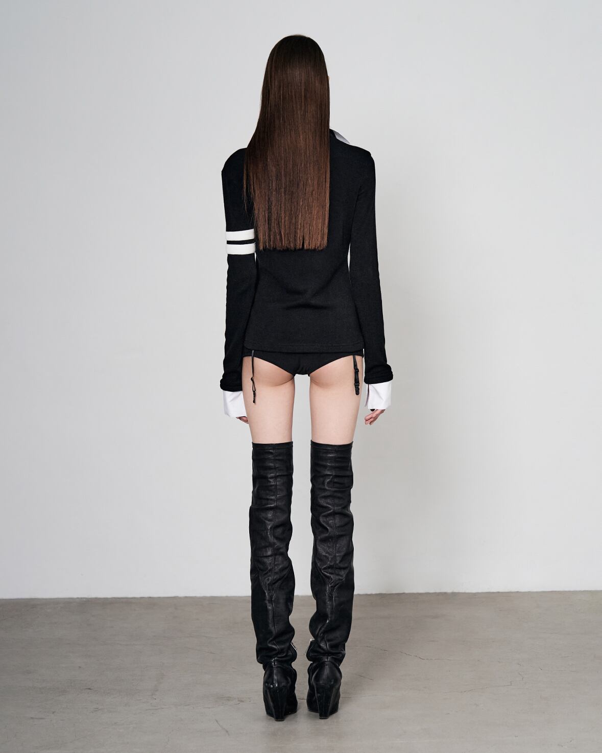 【bonnae】Beaded double collar top (Black)