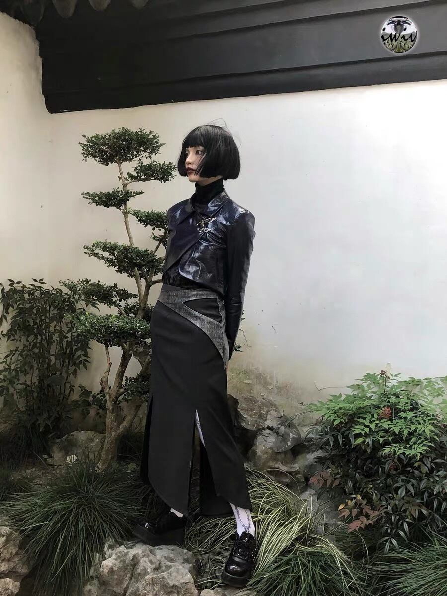 【EWIV】Handsome hippie leather jacket Navy